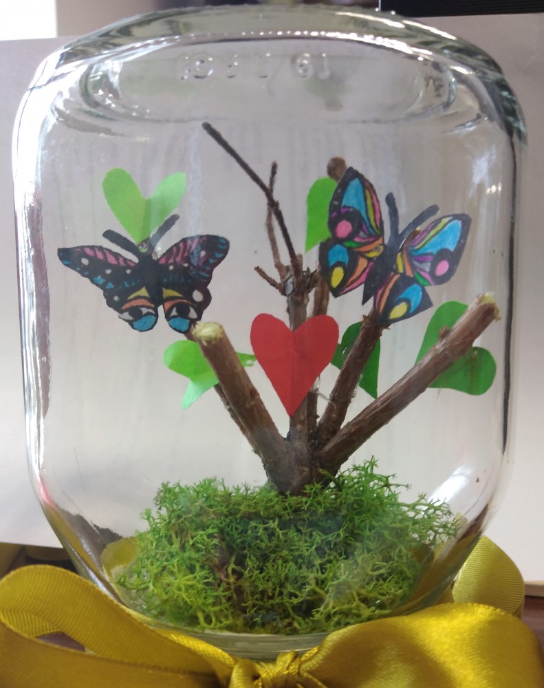 Zgodnie z umową- kolejna koncepcja upominku dla Babci i Dziadka- las w szkle. Obecnie bardzo popularny rodzaj prezentu, jednak kiedy wnuk wykona dzieło samodzielnie, upominek będzie bardzo cenny!